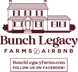 Bunch Legacy Farms has been a true labor of love. Lindsey Ray and Audrey Bunch were married January 22, 1955. They later adopted two children and gave those children a perfect life full of love, security, stability, support, etc. Because of their unselfish sacrifices Bunch Legacy Farms means to fully "honor the past while building for the future"